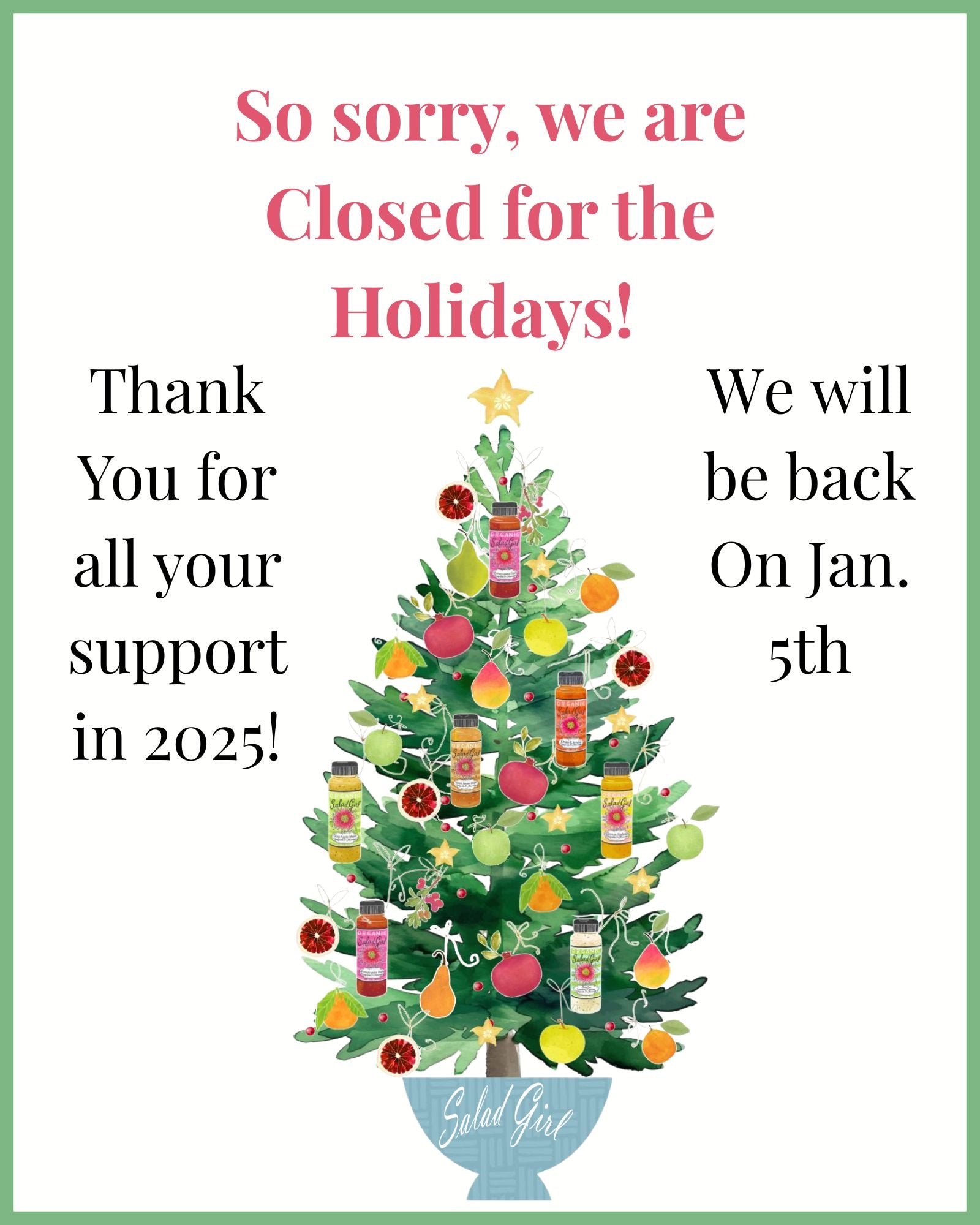 Holiday Shipping Schedule